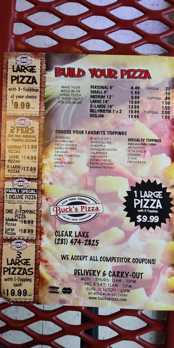 Introducing Buck's Pizza - Houston, a gem nestled at 907 El Dorado Blvd, Houston, TX. This welcoming pizzeria is well-known for its phenomenal array of dishes, ranging from mouth-watering pizzas to hearty freshly baked sandwiches and delightful salads. Each menu item, like the Chicken Caesar Salad and Buck's Famous Stix, is crafted with high-quality ingredients to ensure maximum flavor and satisfaction.